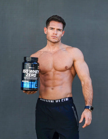Izolat proteic din zer {izolat proteic din zer, emulgator [lecitine (soia)]} 90%, L-glutamină 2,5%, cremă [grăsime de cocos parțial hidrogenată, lapte praf degresat, emulgator (E471, E472a), sirop de glucoză, zahăr, proteine din lapte, stabilizator (fosfați de potasiu)], arome, agenţi de îngroşare (gumă celuloză, gumăxantan), sare de masă, acid alimentar (acid citric), agent antiaglomerant (dioxid de siliciu), L-leucină1 0,2%, îndulcitor (sucraloză), L-izoleucină1 0,1%, L-valină1 0,1%. 1BCAA: aminoacizi cu catenăramificată.Fabricat într-o unitate care produce alimente care conțin ouă, arahide, fructe cucoajă lemnoasă, țelină, pește, crustacee și dioxid de sulf.
